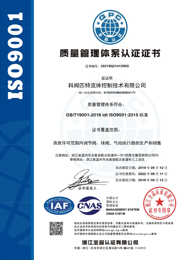 质量治理系统认证证书